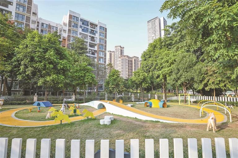 简上社区公园宠物友好活动空间内设施齐全,是爱宠人“遛娃”好去处。