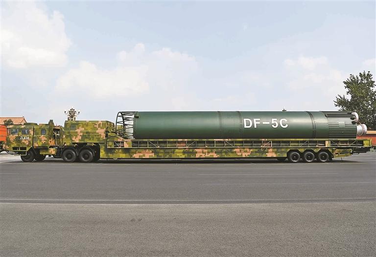 核导弹第二方队接受检阅,图为“东风-5C”。