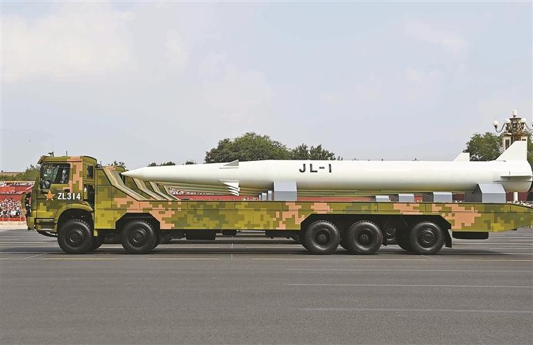 核导弹第一方队接受检阅,图为“惊雷-1”。