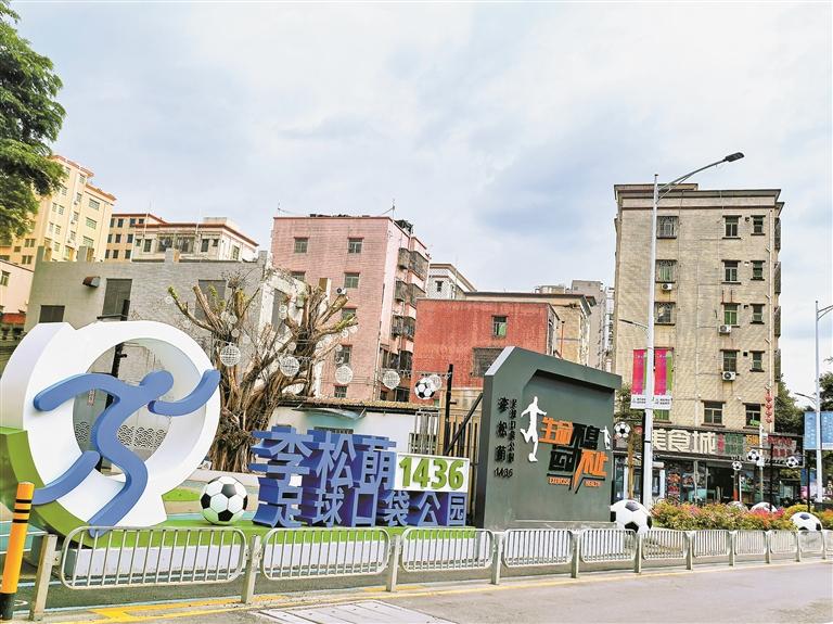 这座新建的足球口袋公园位于金蓢路与蓢新路交会处,呈不规则四边形,面积800多平方米,前身为一块设施老旧的闲置场地。李松蓢社区结合十五运会赛事保障与“民生微实事”推进,通过精准改造唤醒“沉睡资源”,让旧空间焕发新生。