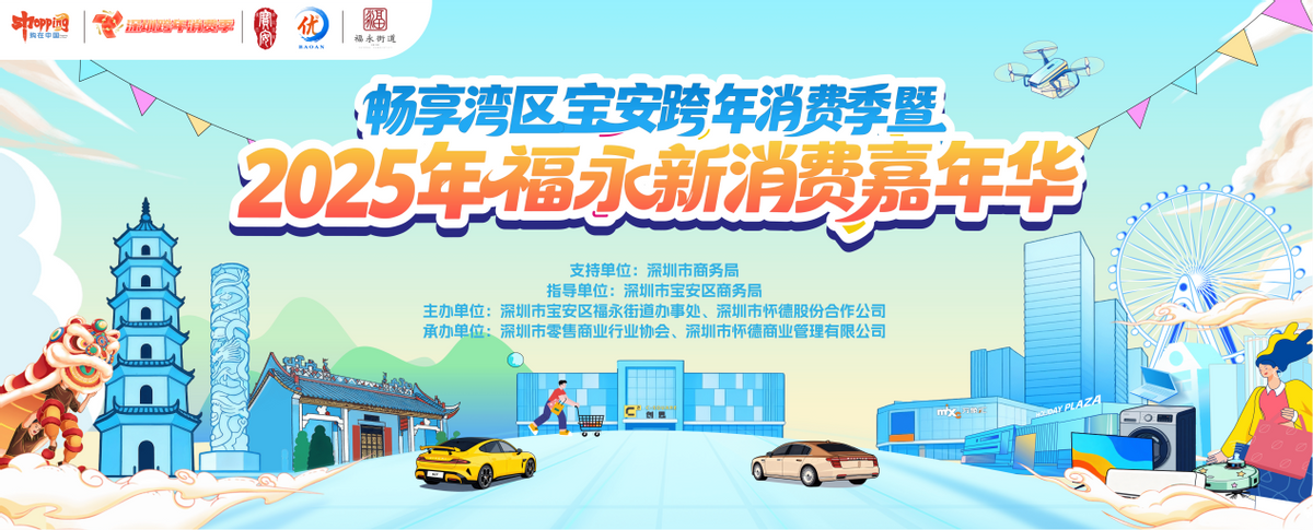 本次活动由深圳市商务局支持、宝安区商务局指导,宝安区福永街道办事处、深圳市怀德股份合作公司联合主办,深圳市零售商业行业协会,深圳市零售商业协会、深圳市怀德商业管理有限公司共同承办。此次活动标志以“季季有主题、月月有惊喜”为核心的宝安暖冬消费季全面拉开帷幕,将通过多元活动与重磅福利,持续激活区域消费活力,塑造具有宝安辨识度的“消费新体验”。
