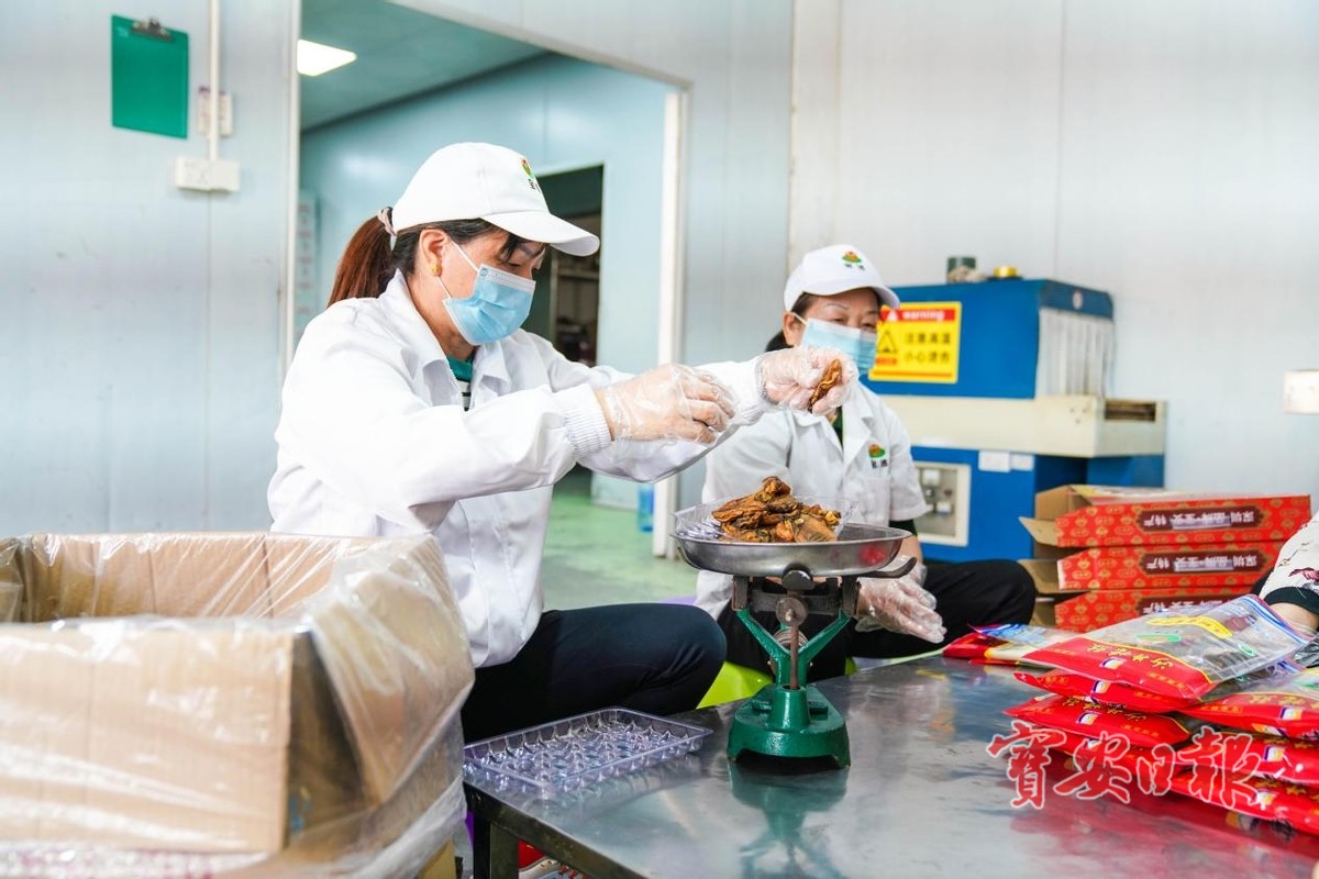 工人将沙井蚝豉进行称重,确保每一包净重准确。