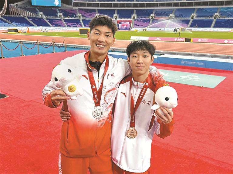 黄博凯与铜牌获得者钟涛(安徽运动员)合影。