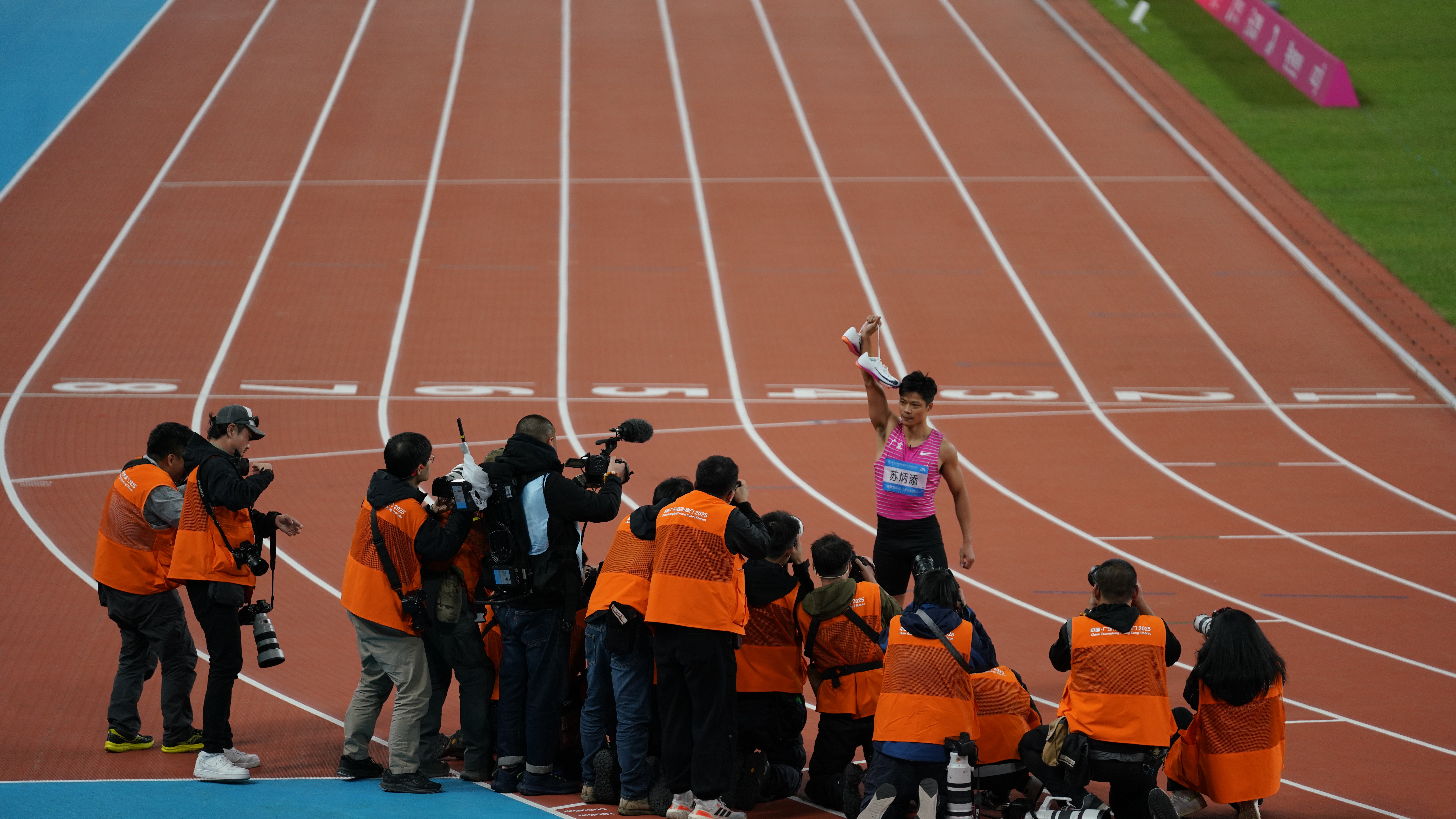 值得一提的是,今年9月26日在山东日照举行的2025年全国田径冠军赛男子4×100米预赛中,苏炳添带领广东队跑出38秒60的成绩,不仅夺得小组第一,更打破了沉寂12年的广东省纪录。