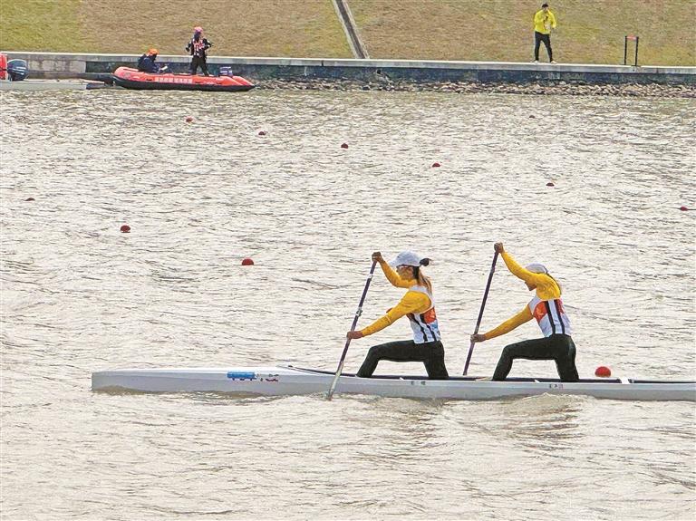 11月20日的广东国际划船中心,前两日的阴云已散,赛道上重新亮起微微的蓝。作为赛艇项目最后一个比赛日,现场从清晨便涌动着紧张而热烈的氛围。9时5分,凭借半决赛阶段的稳健表现,宝安皮划艇小将姜圣洁与搭档张蝶成功跻身决赛,最终以45秒662获得女子200米双人划艇第八名。
