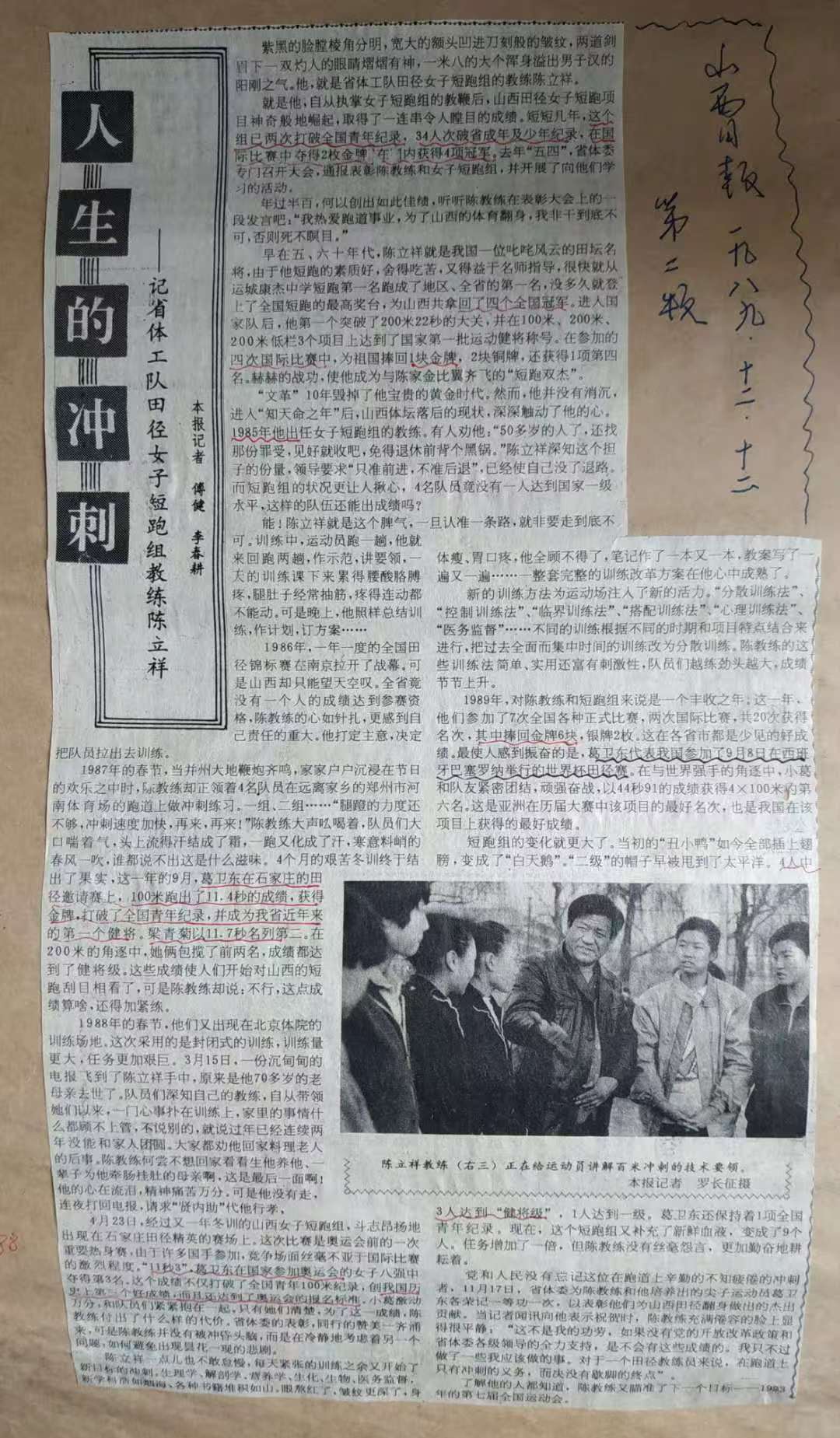运动员生涯,陈立祥为山西拿回四个全国冠军。“我热爱跑道事业,为了山西的体育,我非干到底不可。”这句表彰台上的誓言,烙印着一代人的理想与豪情。