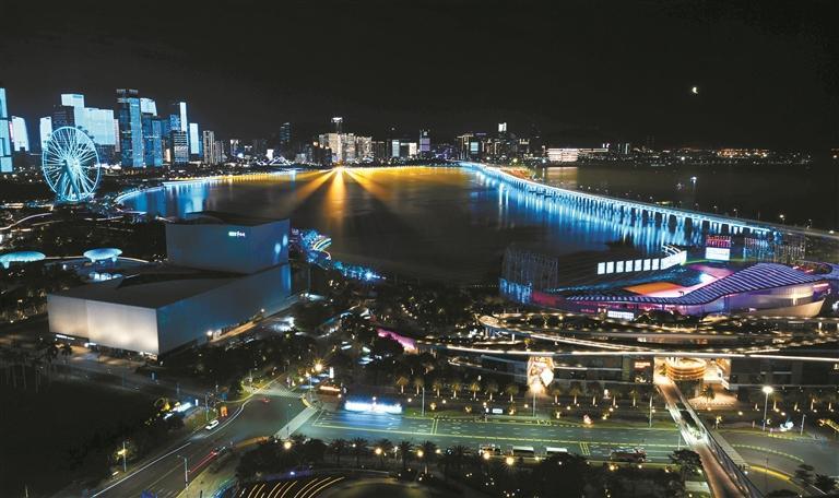 这是11月21日拍摄的广东深圳前海湾夜景。当日,第十五届全国运动会闭幕式在广东深圳前海欢乐剧场举行。新华社发