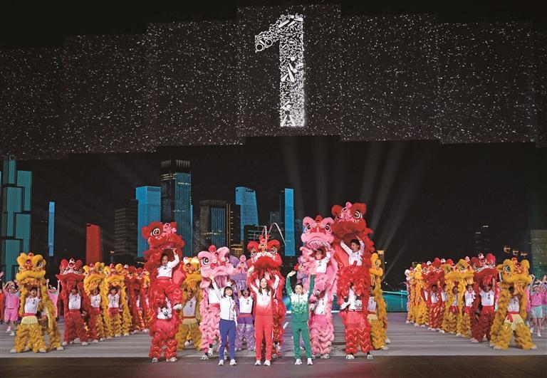宝安日报讯(记者 罗慧怡)21日晚,欢乐剧场,当全运会闭幕式的热场音乐响起,来自咱们宝安的桥头醒狮率先“C位登场”!这张宝安文化名片可是刷足了存在感,从暖场环节的热烈互动,仪式篇章的隆重开场,到在最后的展演环节串联大湾区元素,都能看到桥头醒狮的身影。