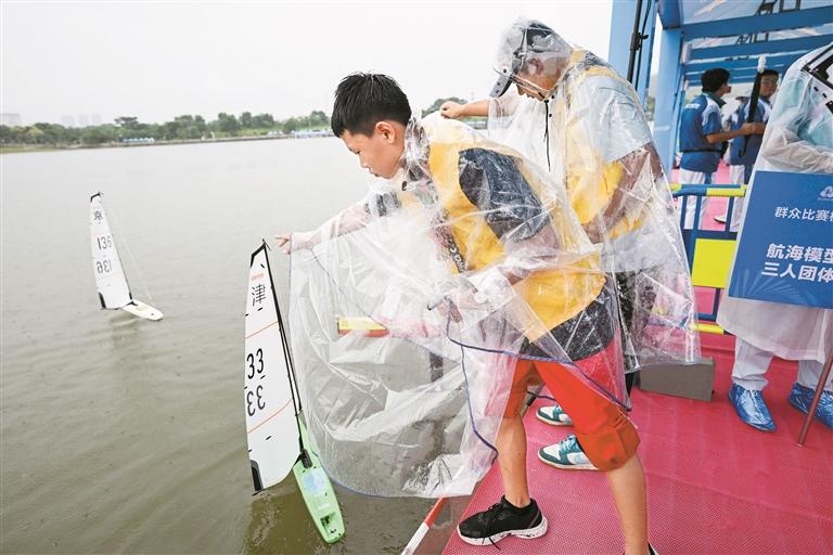 模型 航海模型耐久项目团体赛在五指耙水库开赛。