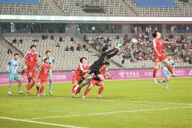 宝安体育中心,则奏响了“双赛狂飙”的激情交响。焕然一新的宝安体育场内,U18、U20男足赛事战况激烈,呐喊与欢呼此起彼伏。国家级非遗醒狮腾跃助兴,与广东小将们主场比赛的汗水与热泪共同澎湃。这里被亲切地称为“主场中的主场”,不仅是“宝安皮尔洛”潘锘均梦想起飞之地,也是最终夺冠的“鄂军”将士难忘的荣耀战场。