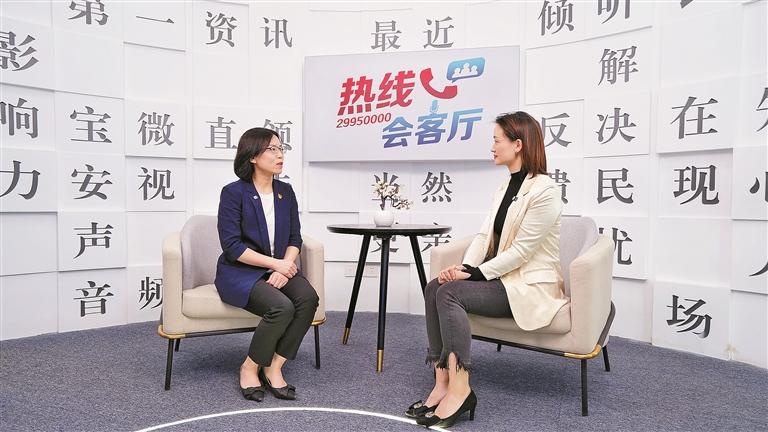 宝安区司法局四级调研员夏茂蔷接受《热线会客厅》栏目主持人胡小娟采访。