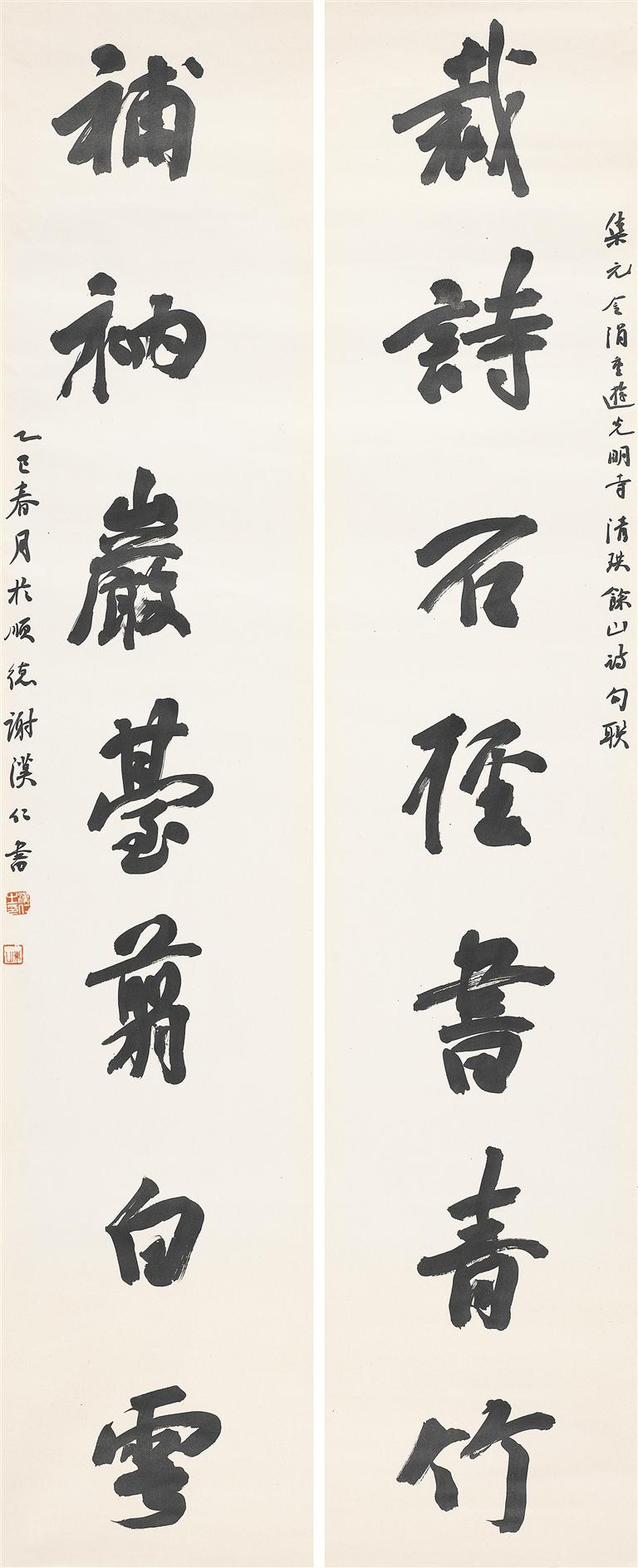 ▲《对联》 作者:谢汉仁(32cm×170cm×2)