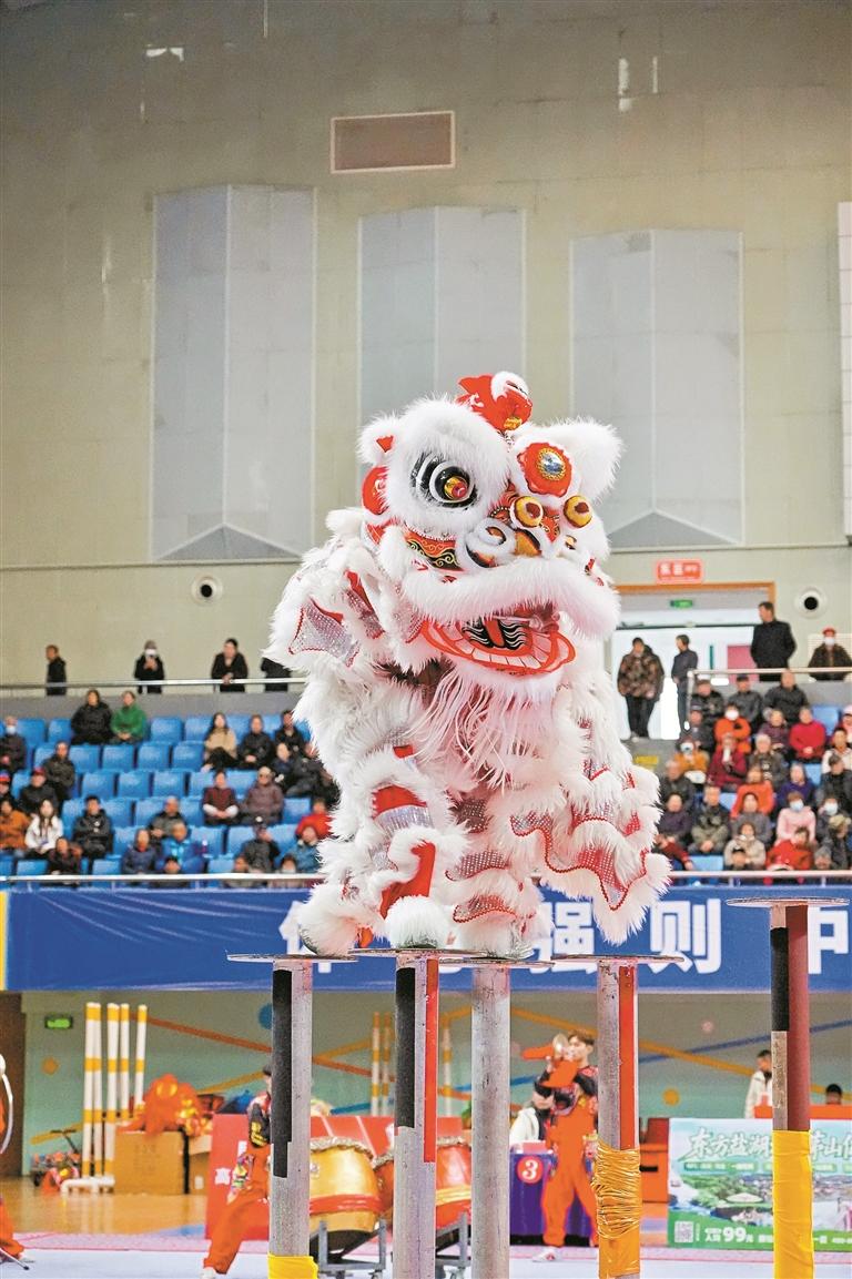 ▲黄麻布醒狮团在比赛中的精彩瞬间。