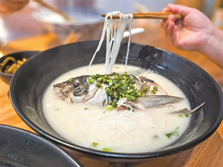 鱼头粉的汤鲜甜,鱼肉细嫩。一碗白月光就这样妥妥地留在了行走路上的记忆里,让旅途回味无穷,给生活添鲜增美。