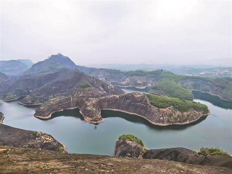 作为国家5A级旅游区,高椅岭的神奇之处是有山有水,山水相伴,比起只有险峻大山的景点,平白多了许多灵气。它拥有的丹霞地貌总面积约2442平方公里,是中国面积最大的丹霞地貌集中分布区之一。裸露的巨大砂岩,上面稀疏分布着一些低矮的灌木、草丛,而一汪碧水,就在砂岩间自由穿行,山的形状引导着水的走向,水面蜿蜒盘旋,静默在山的臂弯里。红岩绿水、险寨奇涧,而当地人又用丰富的想象力,起了许多妙趣横生的名字,如“龙脊背”“巨蜥湖”等,让人心生向往。