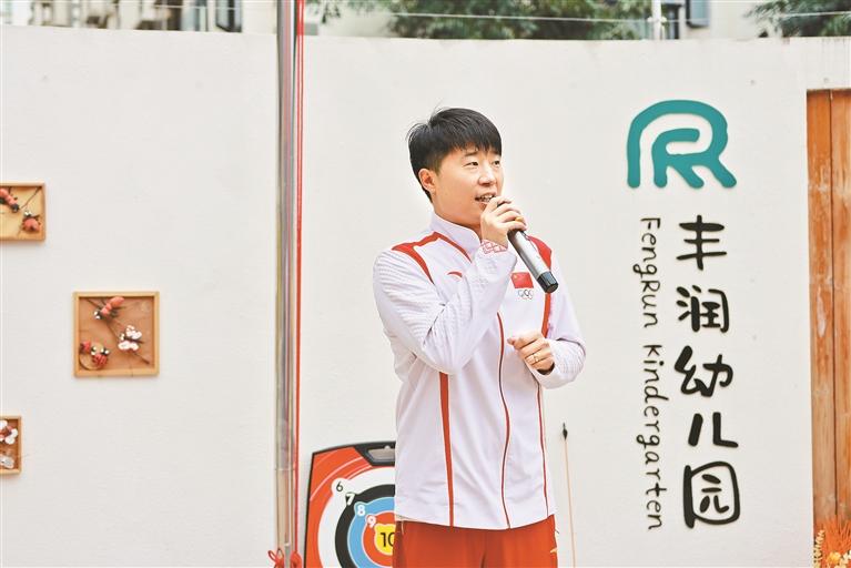 近日,巴黎奥运会男子25米手枪速射冠军、中国国家射击队名将李越宏,先后走进深圳市龙华区行知小学附属丰润幼儿园与深圳市滨苑幼儿园(龙华),以“体育榜样+趣味互动”的形式,为师幼及家长们带来一场兼具运动乐趣与精神启迪的特殊课堂,让奥运精神在幼儿心中播下成长的种子。