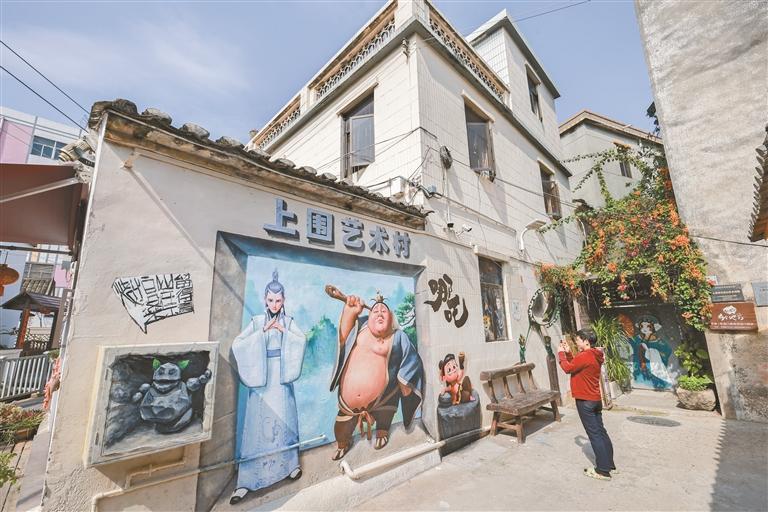 ▲市民在上围艺术村打卡拍照。