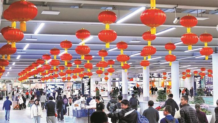 ▲春运首日,深圳机场“热气腾腾”,航站楼“换上新装”。