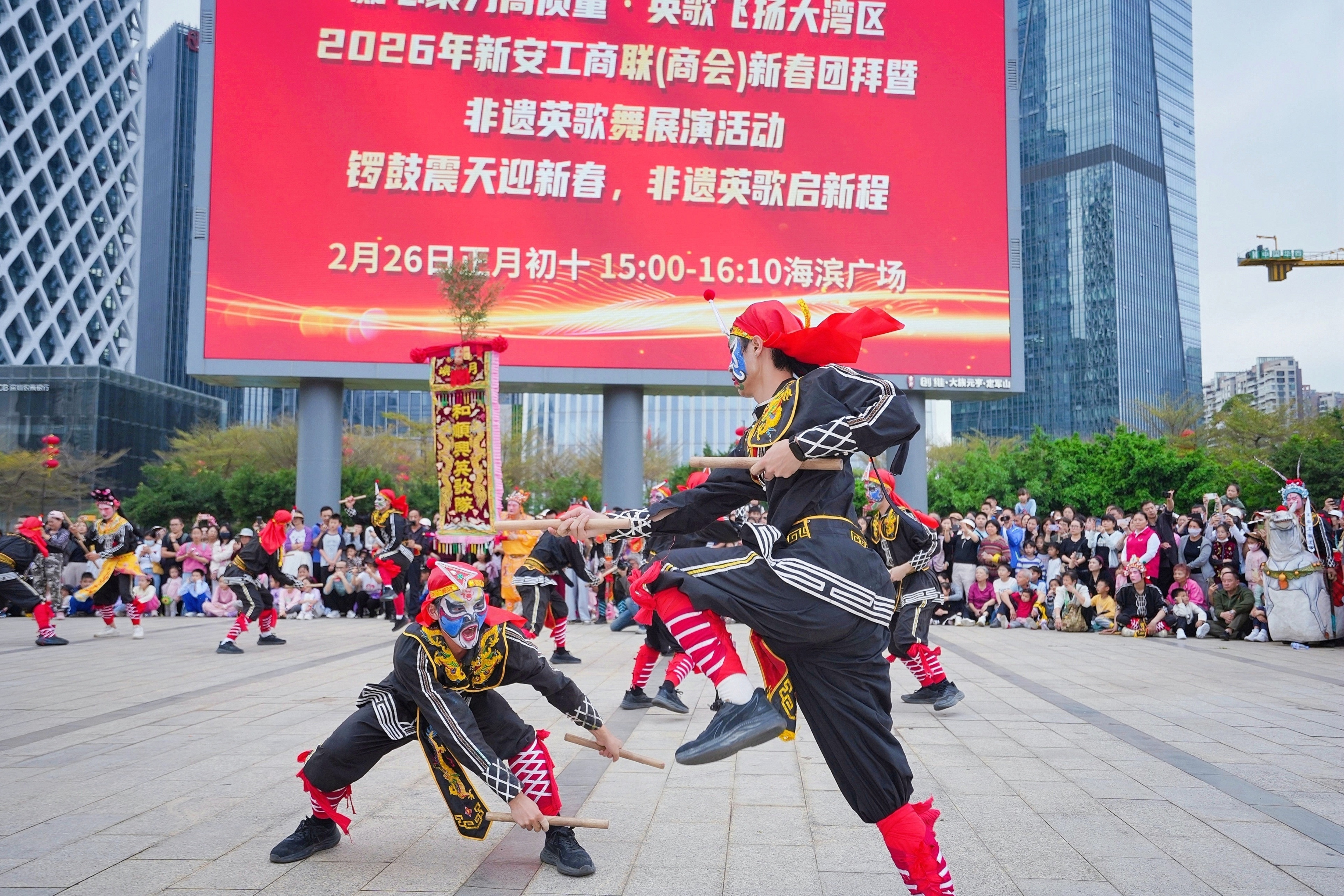 2月26日,由新安街道工商联(商会)主办的“凝心聚力高质量·英歌飞扬大湾区”2026年新春团拜暨非遗英歌舞展演活动在宝安区精彩上演。活动以“文化搭台、经济唱戏、政企同心、共谋发展”为内核,旨在以昂扬向上的文化仪式感,凝聚辖区发展共识,激发企业创新活力,为新年开好局、起好步注入强劲动能,展现了新安辖区上下同心、共赴高质量发展的昂扬姿态。