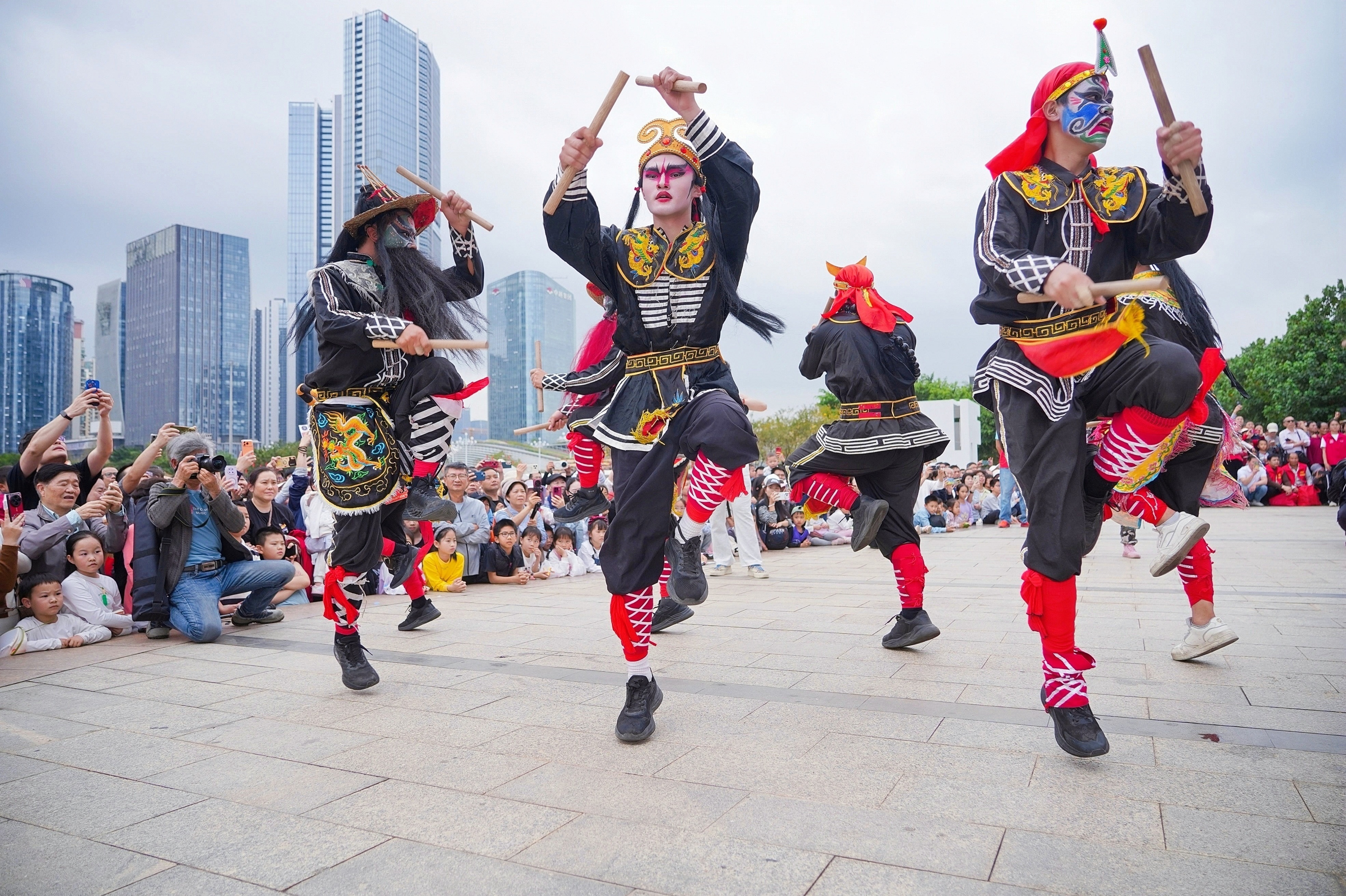 本次活动邀请了被誉为“中华战舞”的国家级非物质文化遗产——有着300年历史的普宁和顺兴英歌队,依次走进汇聚创新园、旭兴达工业区、大运林公园广场、湾区大广场、汇聚宝安湾智创园、华润雪花啤酒小镇等地,完成了一场非遗文化进园区、进社区、进企业、进商圈的生动巡礼。“我们把一个拥有300多年历史的英歌舞团队邀请到宝安,来到我们新安,来到各园区,也是利用英歌舞的文化力量、奋进精神,与我们新安企业家的拼搏精神融合在一起,共同为宝安区、大湾区高质量发展奋斗、努力!” 新安工商联(商会)执行会长陈锋说。