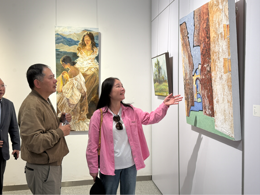 展览现场,不少参展画家与到场嘉宾在作品前驻足交流,围绕创作主题、艺术语言与表现方式深入探讨,现场氛围热烈。