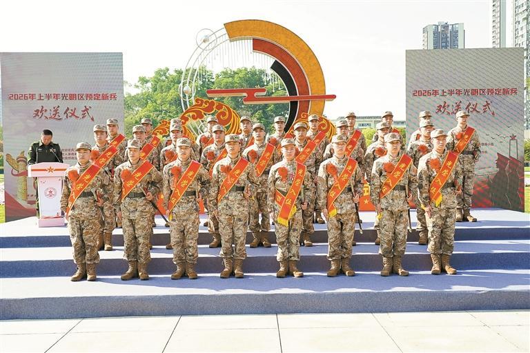 ▲光明区举行2026年上半年预定新兵欢送仪式。