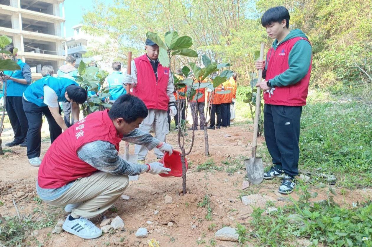活动中,各方力量精准发力、亮点纷呈,打破传统植树活动的单一模式。大浪街道党办党员干部带头冲锋,以“党建红”引领“生态绿”,用实干践行生态责任;龙华区检察院志愿者们创新融入“植绿传廉”理念,一边植树一边向现场群众普及生态保护法律法规,让“护绿有法、爱绿有责”的理念润物无声;深圳市龙华环境有限公司城市管家团队则发挥专业优势,从树坑规格把控,到栽种深度校准、定根水浇灌,再到后期养护技巧讲解,每一个环节都体现着专业水准,确保“种一棵、活一棵、成一片”,用专业守护绿色希望。