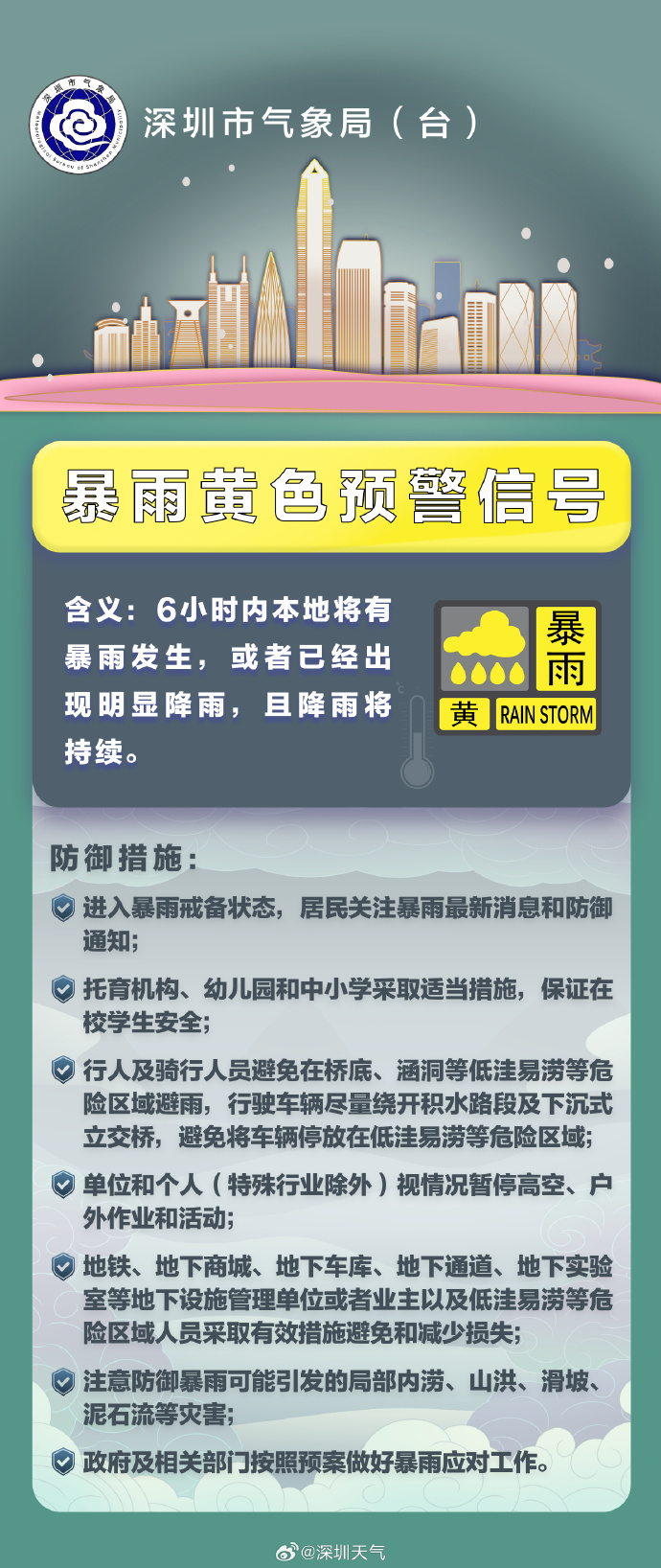 受飑线系统影响珠江口西侧已出现10级左右最大阵风并伴有强雷暴,目前强雷雨云团继续东移,预计我市将自西向东出现强雷雨天气,局地最大阵风10级左右,并可能出现小冰雹。深圳市气象台2026年03月30日09时00分将全市雷雨大风黄色预警信号升级为橙色,全市暴雨黄色预警信号生效中,请迅速落实各项防风防雨防雷电措施;立即停止户外活动和作业。