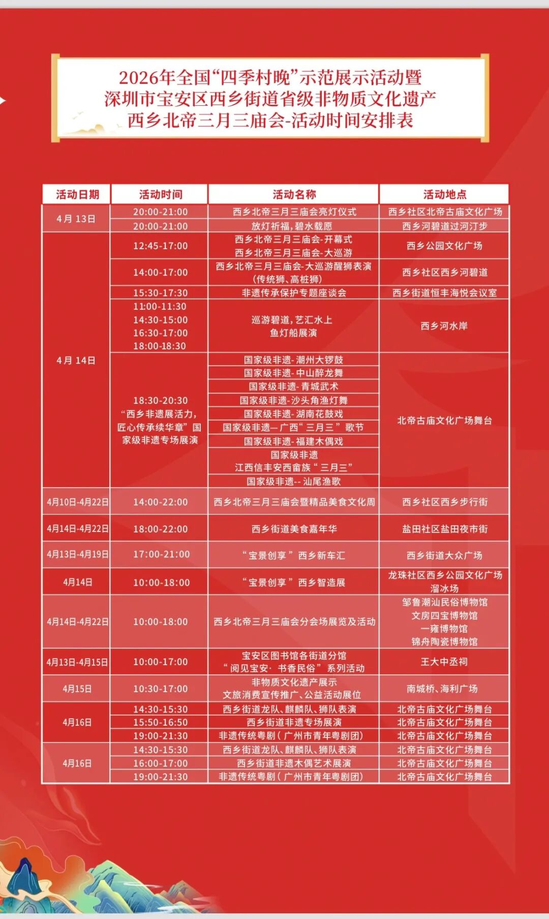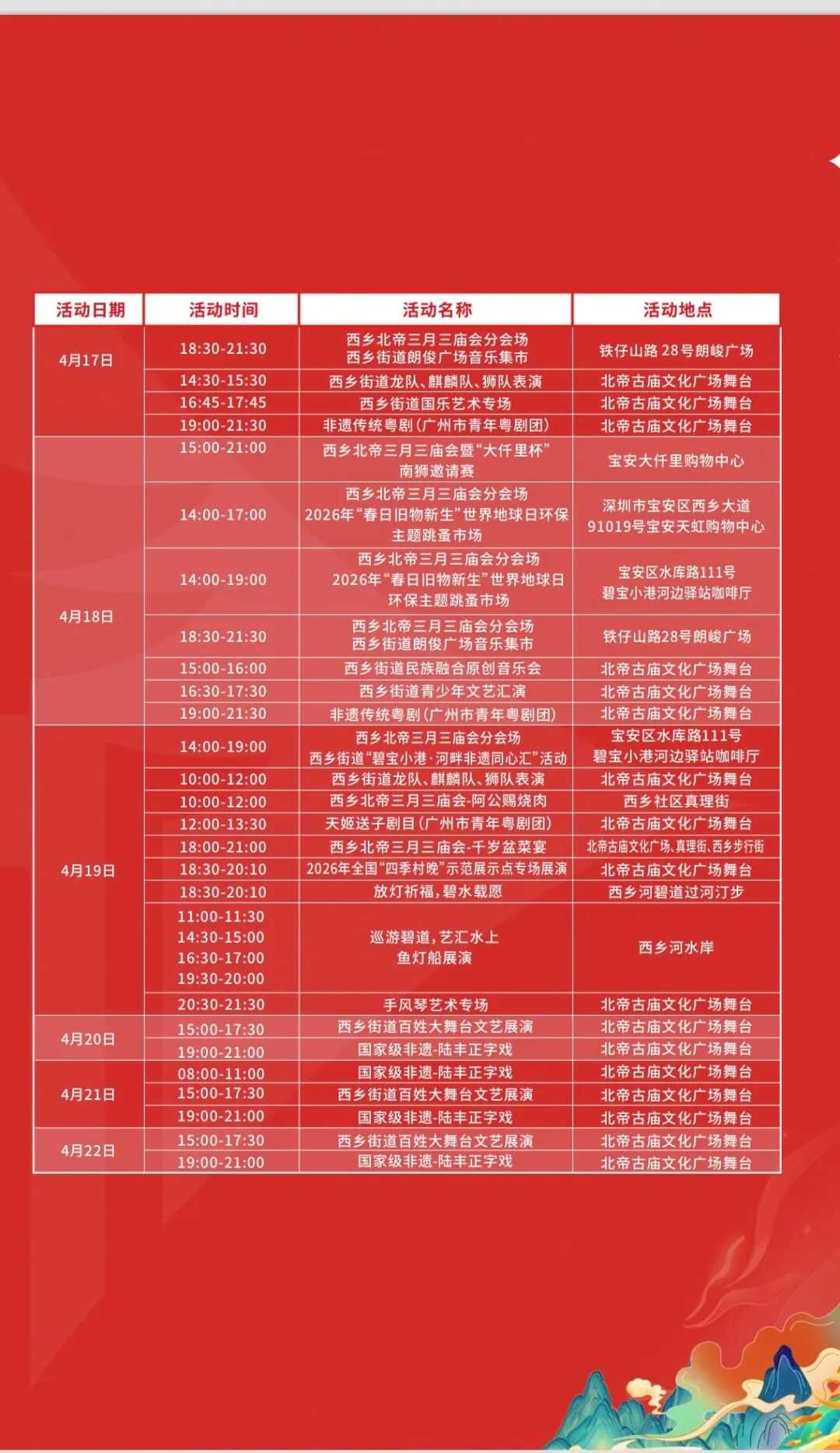 活动时间安排表来啦~