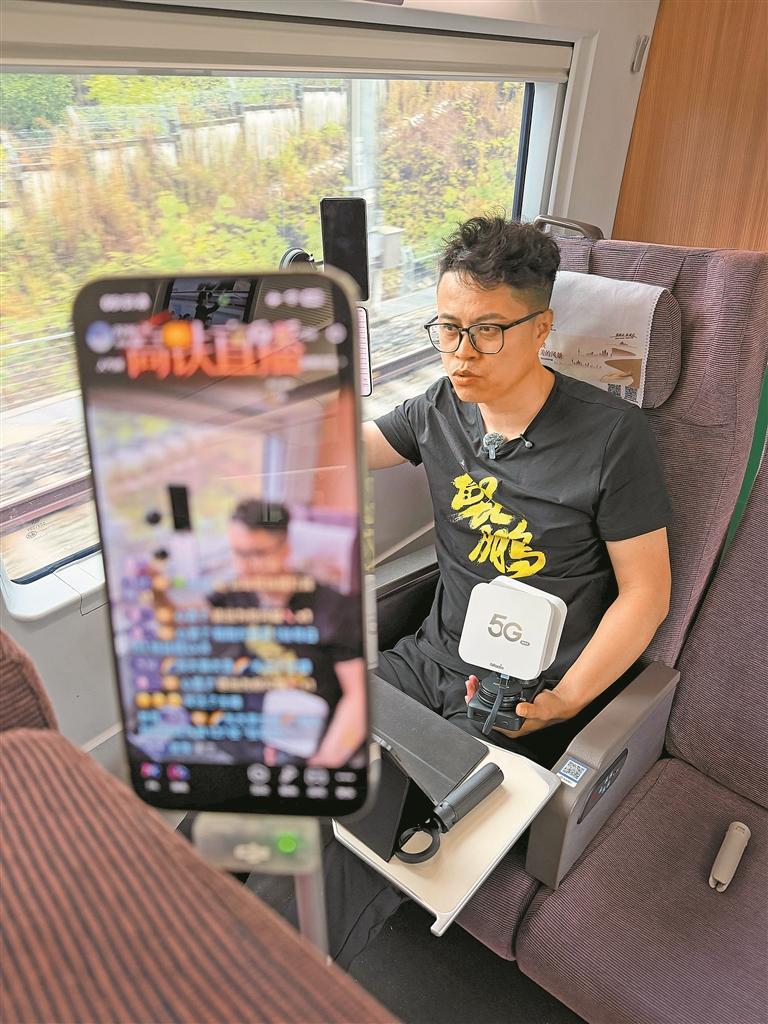 张利鹏在高铁上做直播,检验5G CPE产品实力。