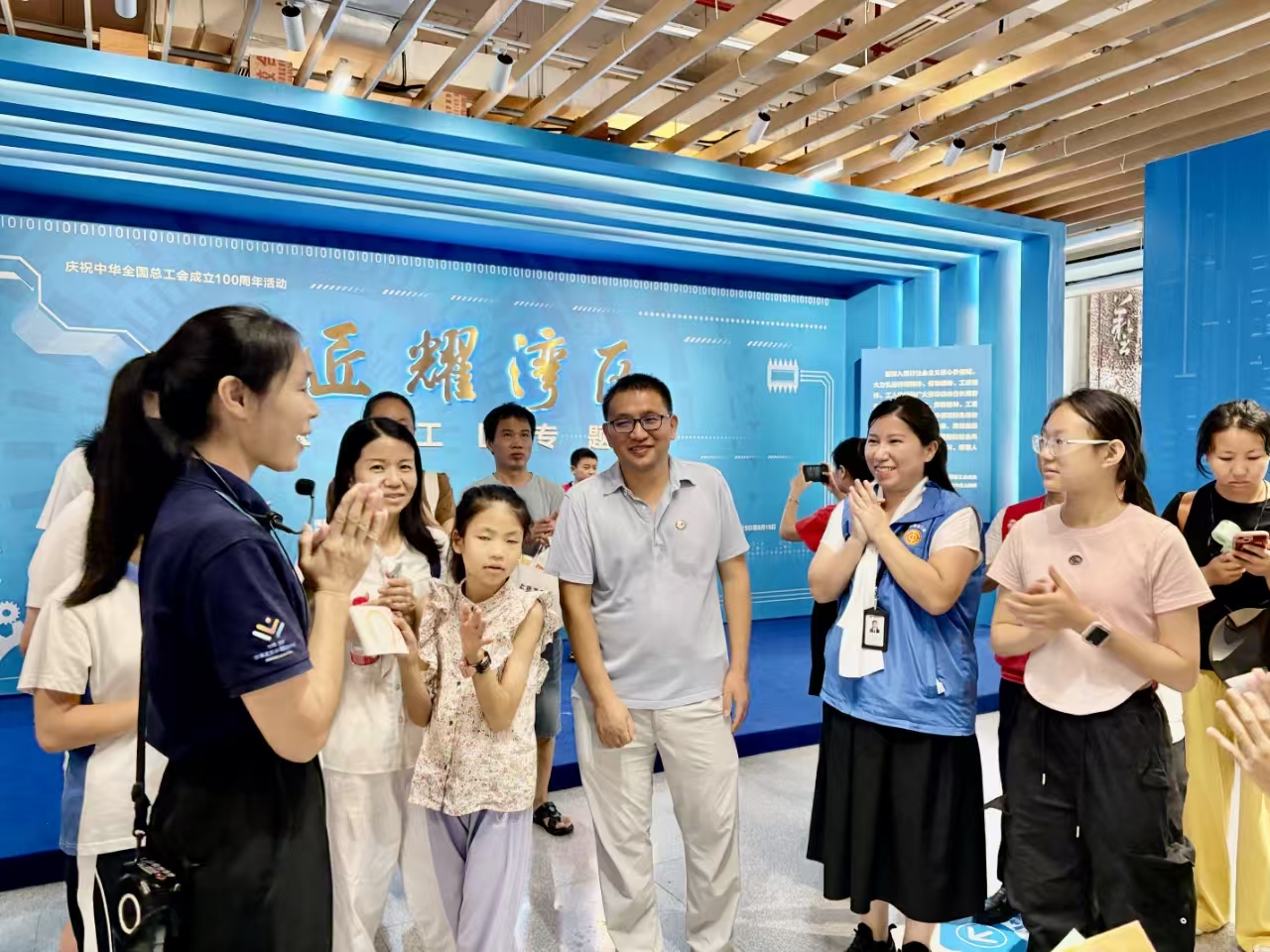 活动上,亲子们共同上了一堂“工心向党”思政课,从革命战争年代的工人运动先驱讲到新时代劳模工匠的奋斗故事,大家认真听,细心悟,感受深刻的工匠精神。随后还参观了中华文明溯源展区、“匠耀湾区”工匠专题展等。