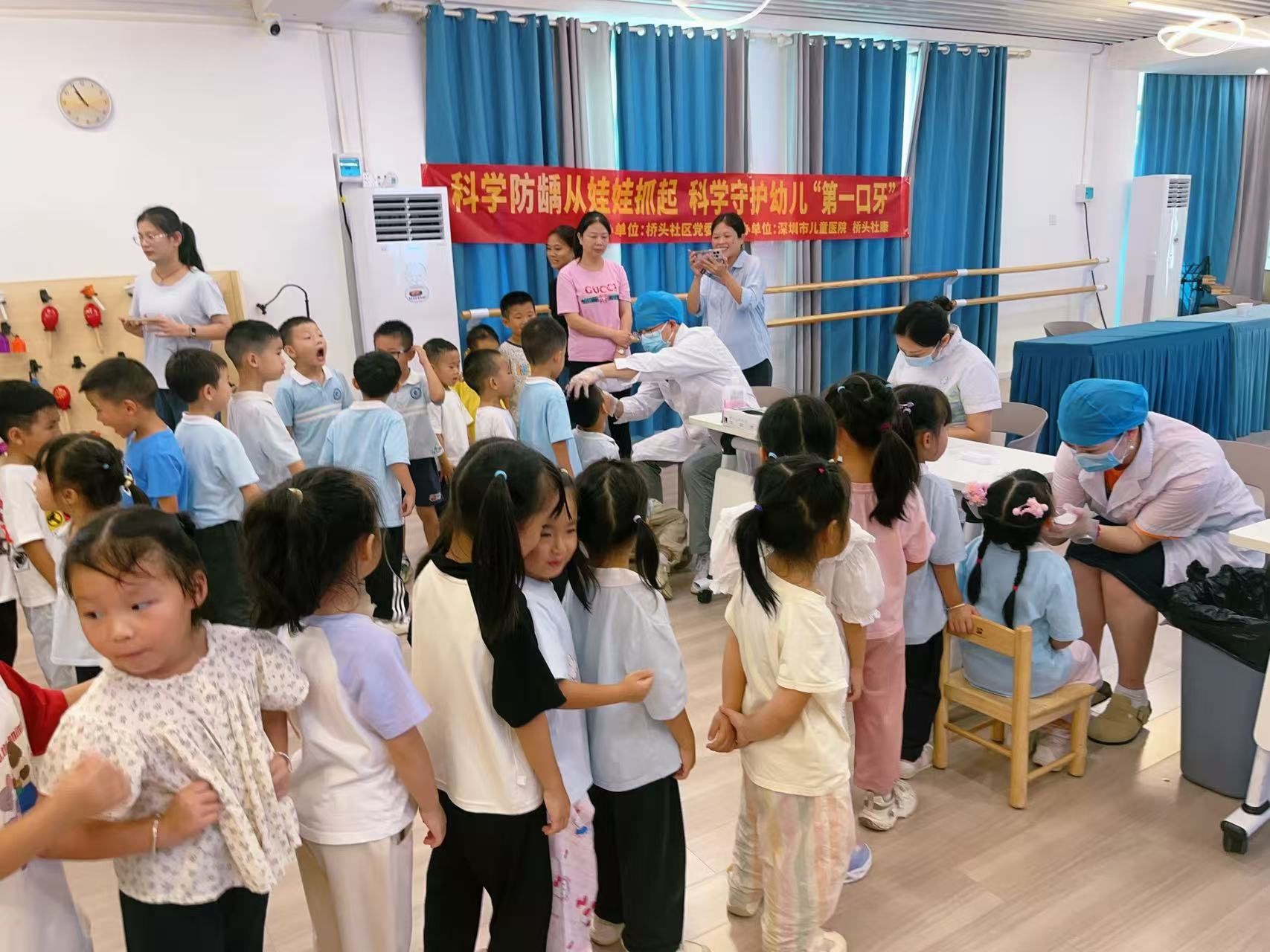 近日,桥头社区联合深圳市儿童医院、桥头社康中心,在桥头幼儿园开展“科学防龋从娃娃抓起,科学守护幼儿‘第一口牙’”主题活动。活动既为社区幼儿口腔健康保驾护航,又结合“两热”防控需求同步开展防蚊宣传,贴心服务惠及众多家庭。