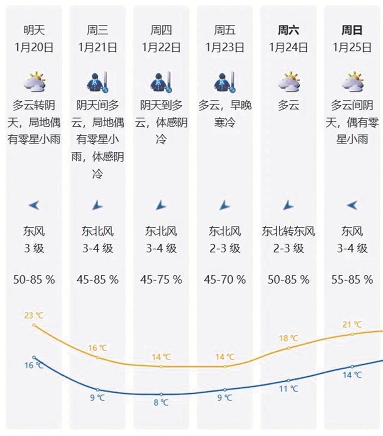 深圳的天气转折将从1月21日正式开始,具体来看:1月20日仍以晴天干燥为主,云量稍多,部分时间有轻雾或霾,昼夜温差大,早晚清凉,白天温暖。从21日起到23日,受冷空气影响,气温明显下降,最低气温将降至8℃。预计1月24日起,气温才会逐步回升。