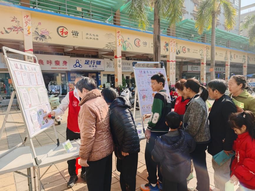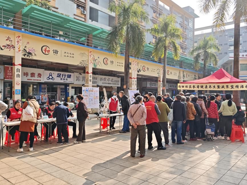 近日,福海街道稔田社区民政联合旭源社工在福安广场开展了一场别开生面的健康养生暨政策宣传活动。活动以游园互动的形式,吸引了近百名社区居民踊跃参与,大家在轻松愉快的氛围中学习健康知识,了解惠民政策。