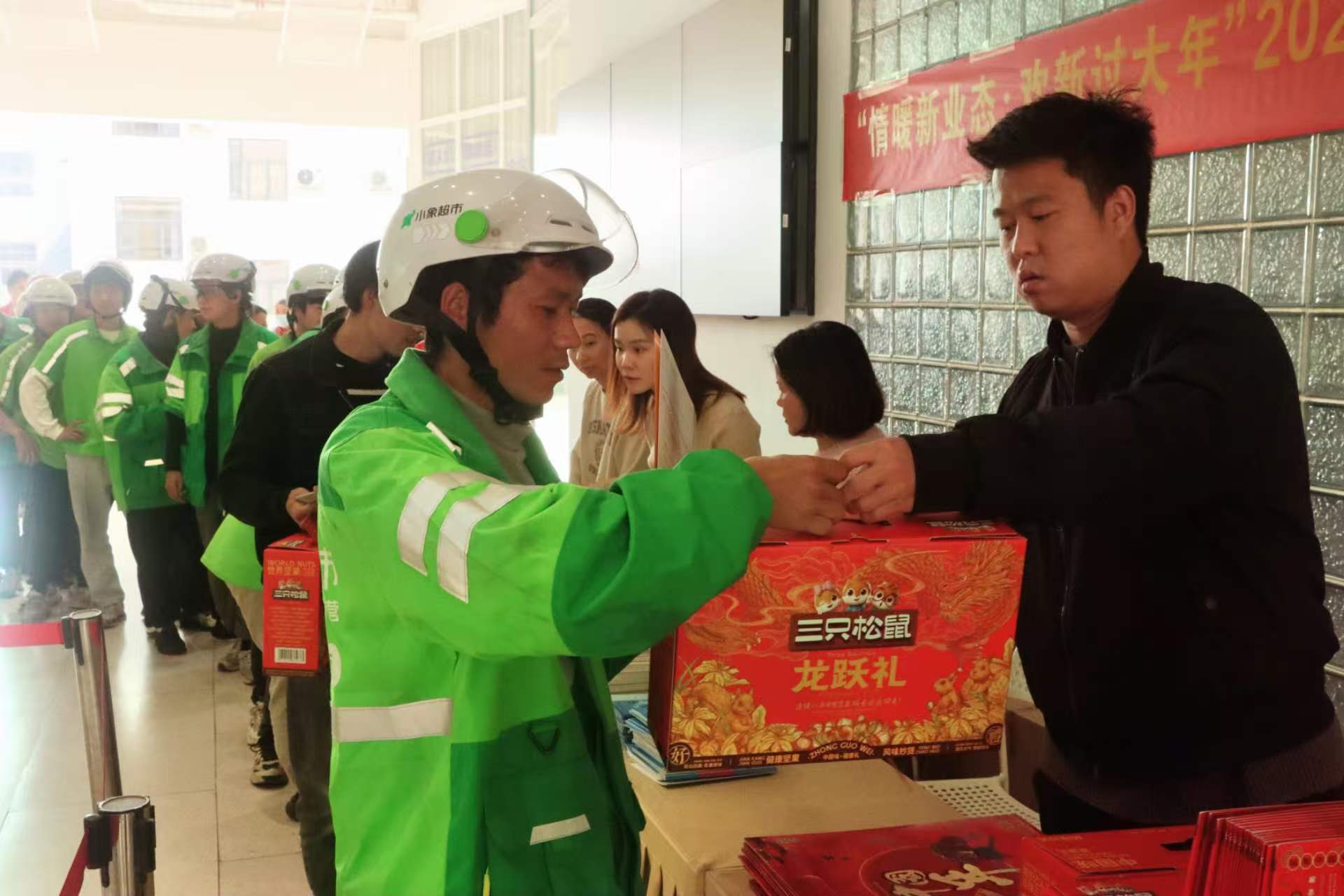 活动现场暖意融融,新业态劳动者齐聚一堂,巧作福桶、共话年味。随后,工会工作人员分别向新业态劳动者送上新春慰问品与节日祝福,切实传递工会“娘家人”的暖心关爱,进一步增强了新业态劳动者的获得感、幸福感与归属感。
